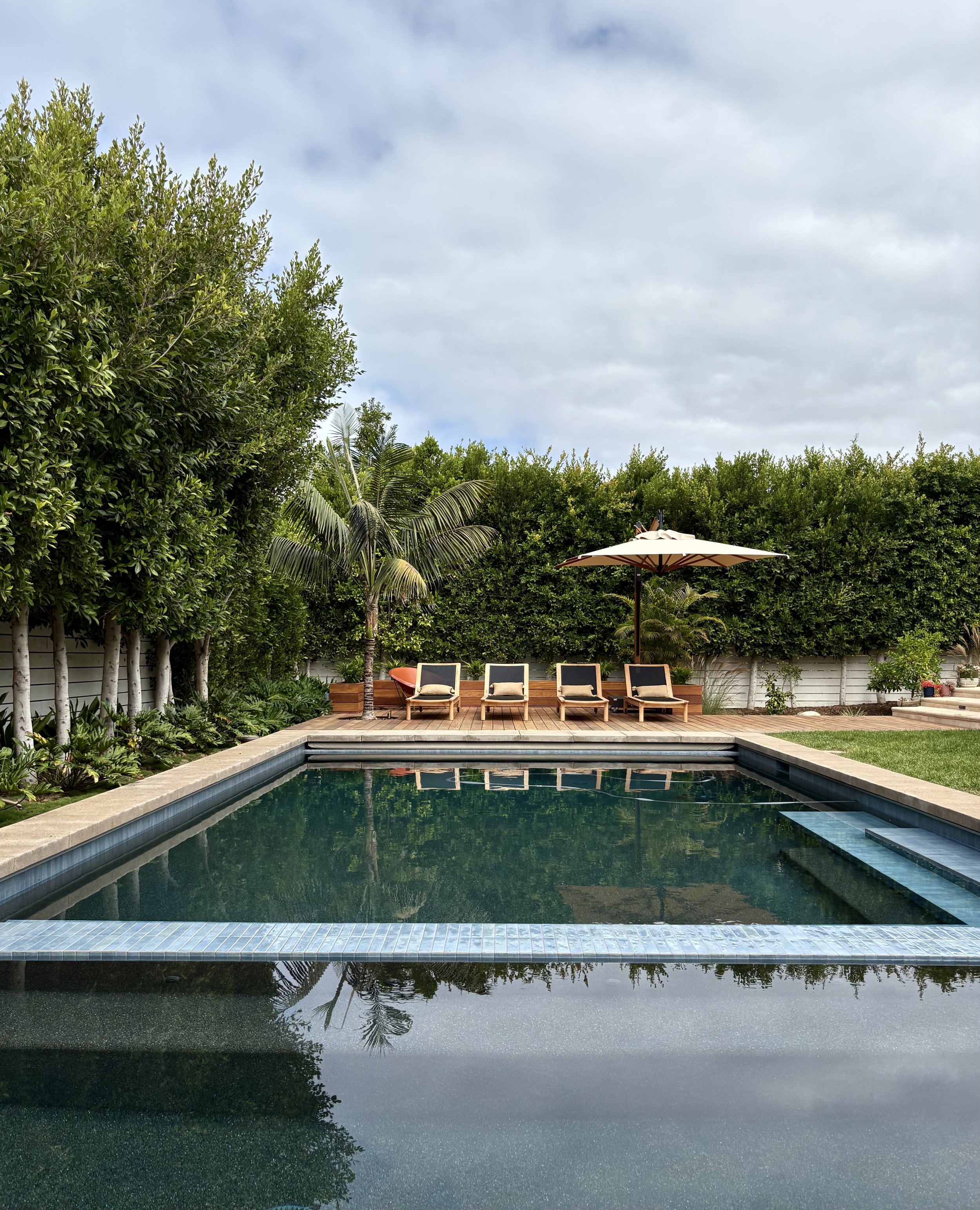 This beauty needed an Ipe deck, Japanese-California lush planting, lighting, and shade structure to complement the old-growth Redwood 1960 mid-C architecture. We also designed the wet room style pool bath with Heath tile, new steel door, and fixtures.